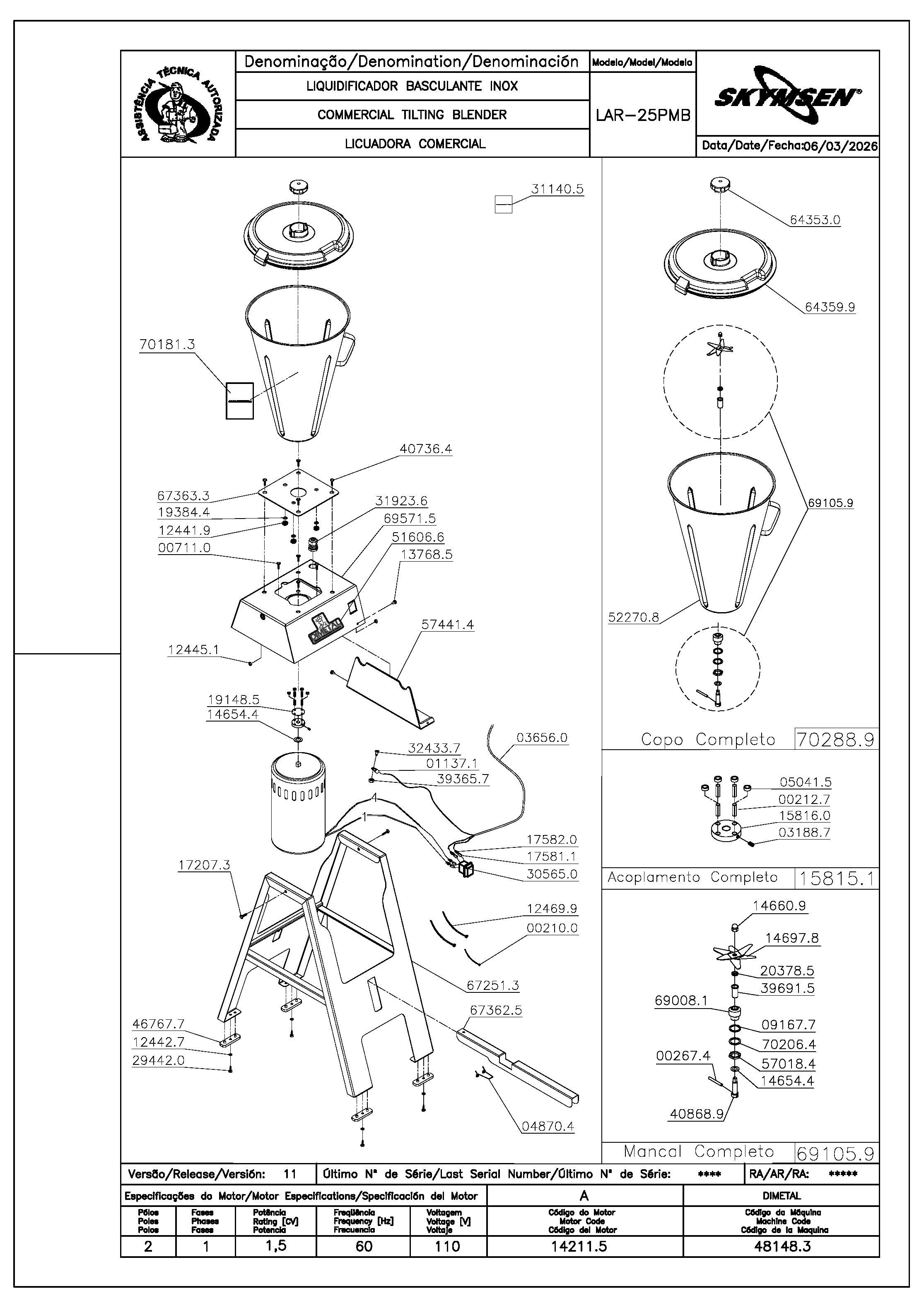 | 70209.8 | COPO COMPLETO LAR-25MB(702098) | PC | US$ 166.53 |