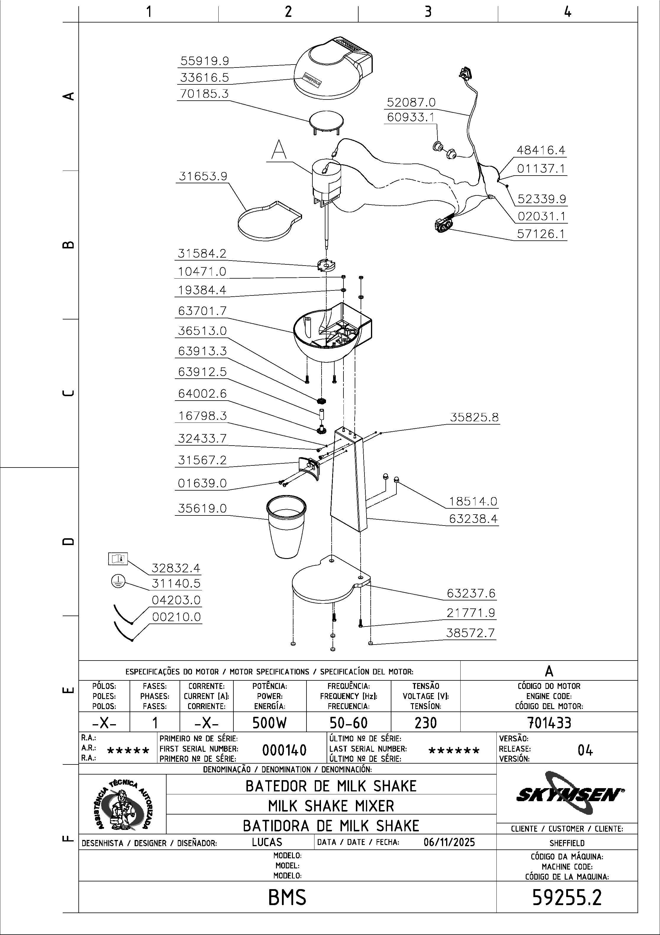 *The item has been replaced by the number 697996 MOTOR 500W 230V CE BMS (ZHEJIANG YONG |