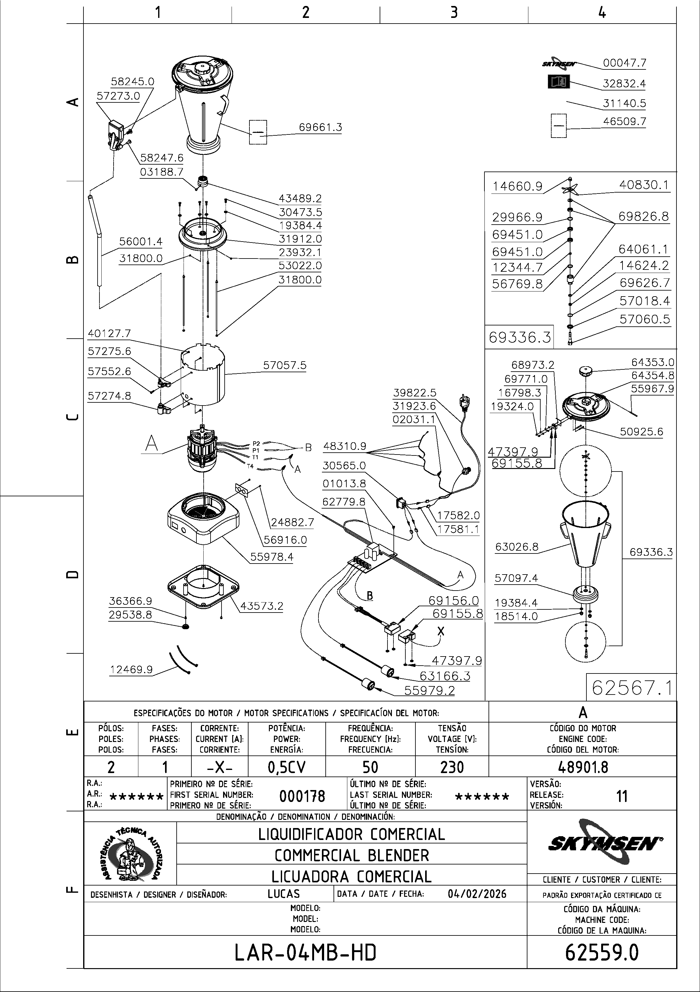 | 48901.8 | MOTOR 0,5CV 50Hz 220V W (11997035) | PC |