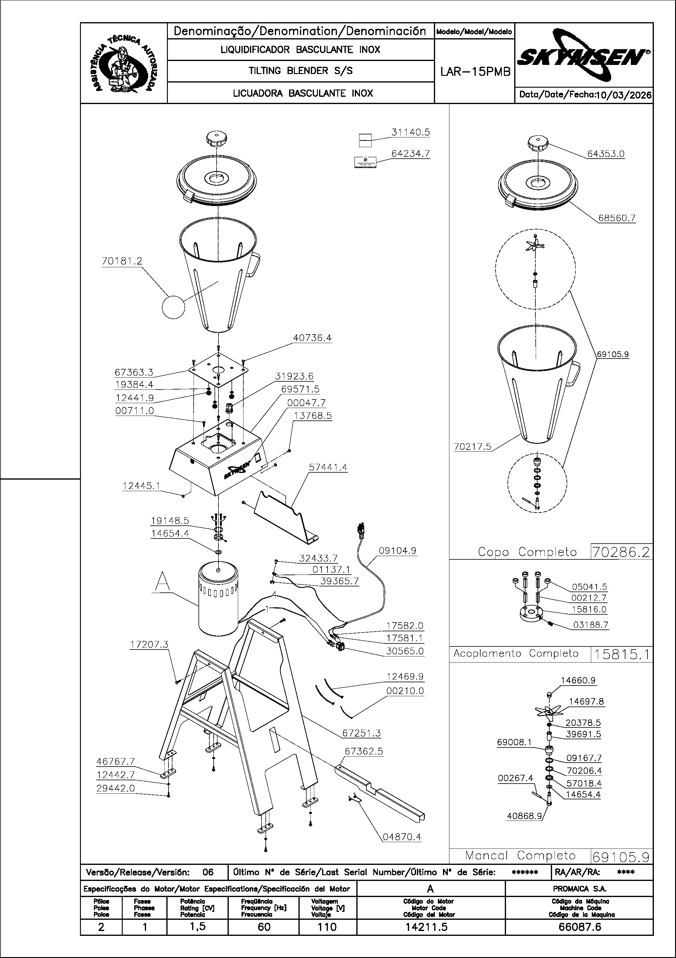 | 14211.5 | MOTOR 1,5CV 60HZ 127/220V W | PC |