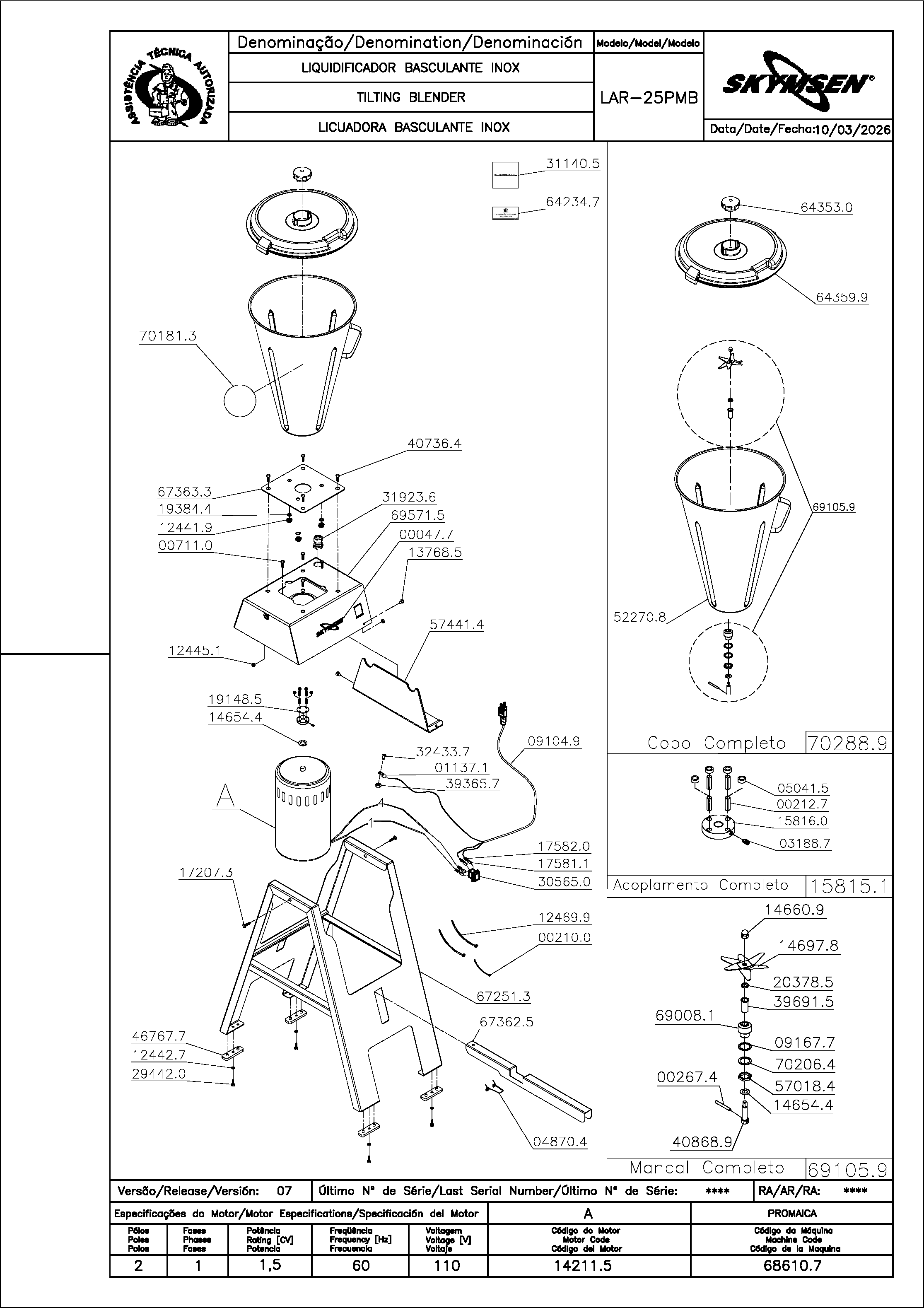COMMERCIAL TILTING BLENDER, STAINLESS STEEL SEAMLESS CUP, 25 LITERS