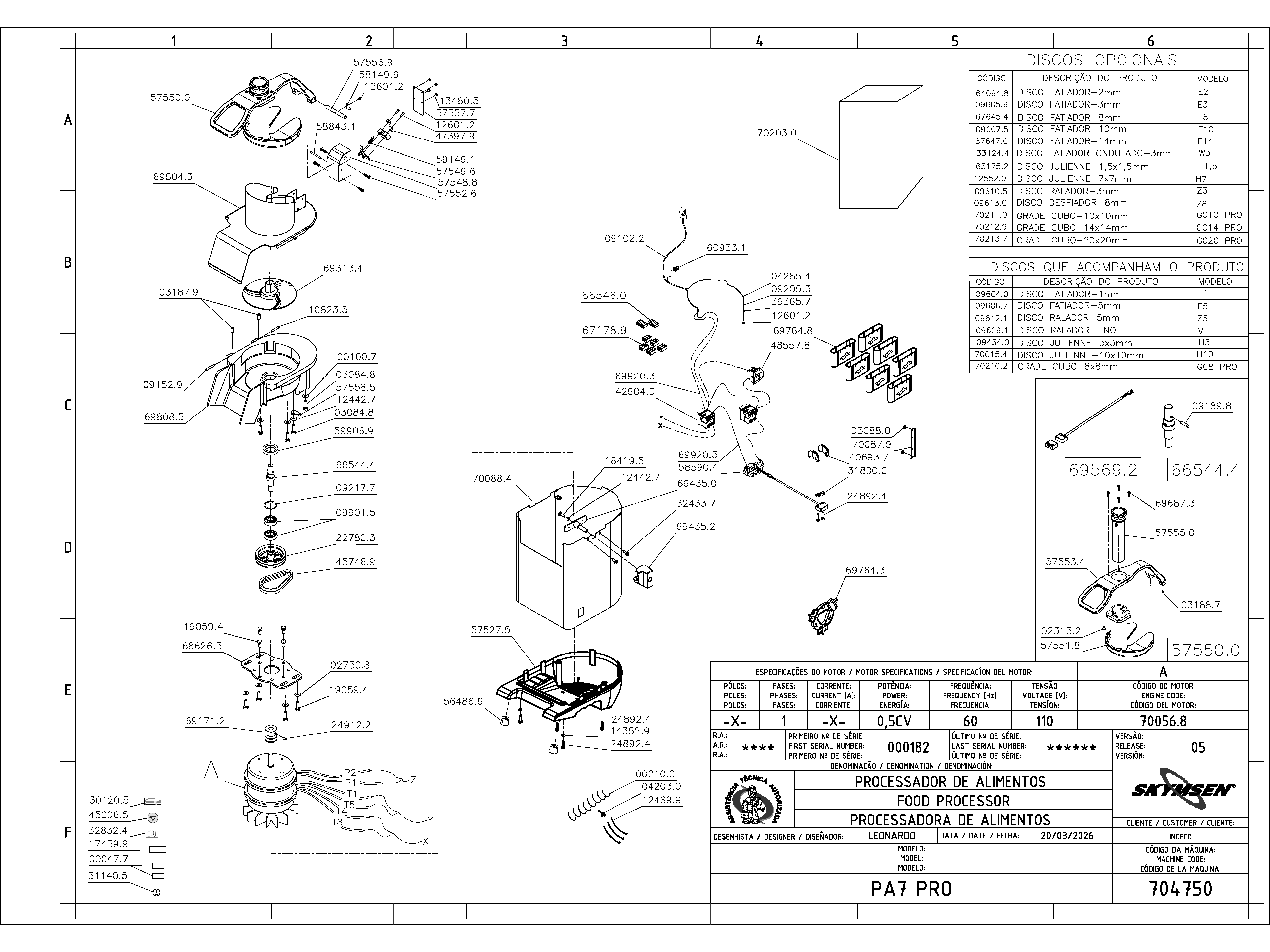 FOOD PROCESSOR, STAINLESS STEEL, WITH SAFETY SYSTEM, WITH 7 DISCS, (DISC DIAMETER 203 mm)