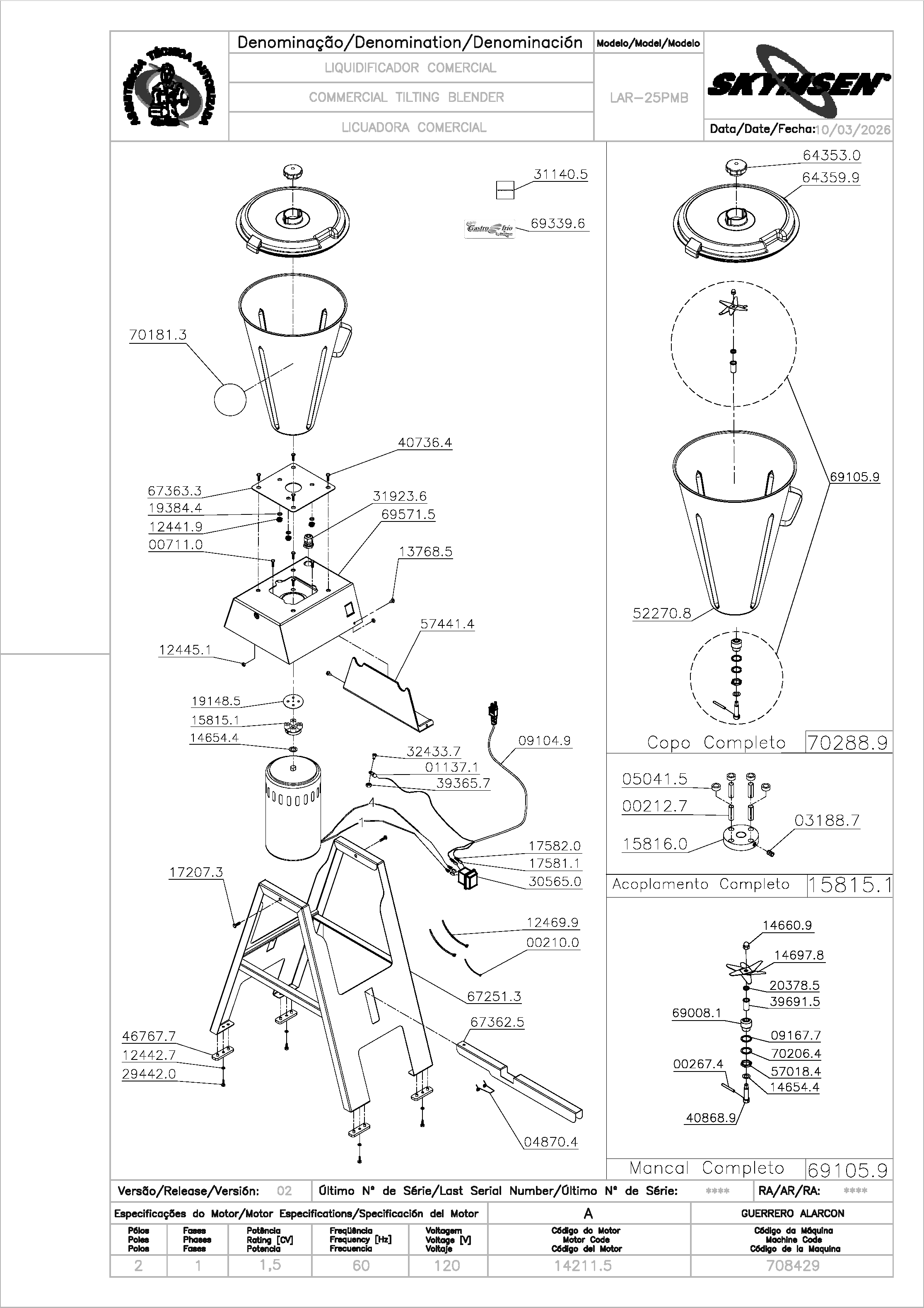 | 70209.8 | COPO COMPLETO LAR-25MB(702098) | PC | US$ 166.53 |