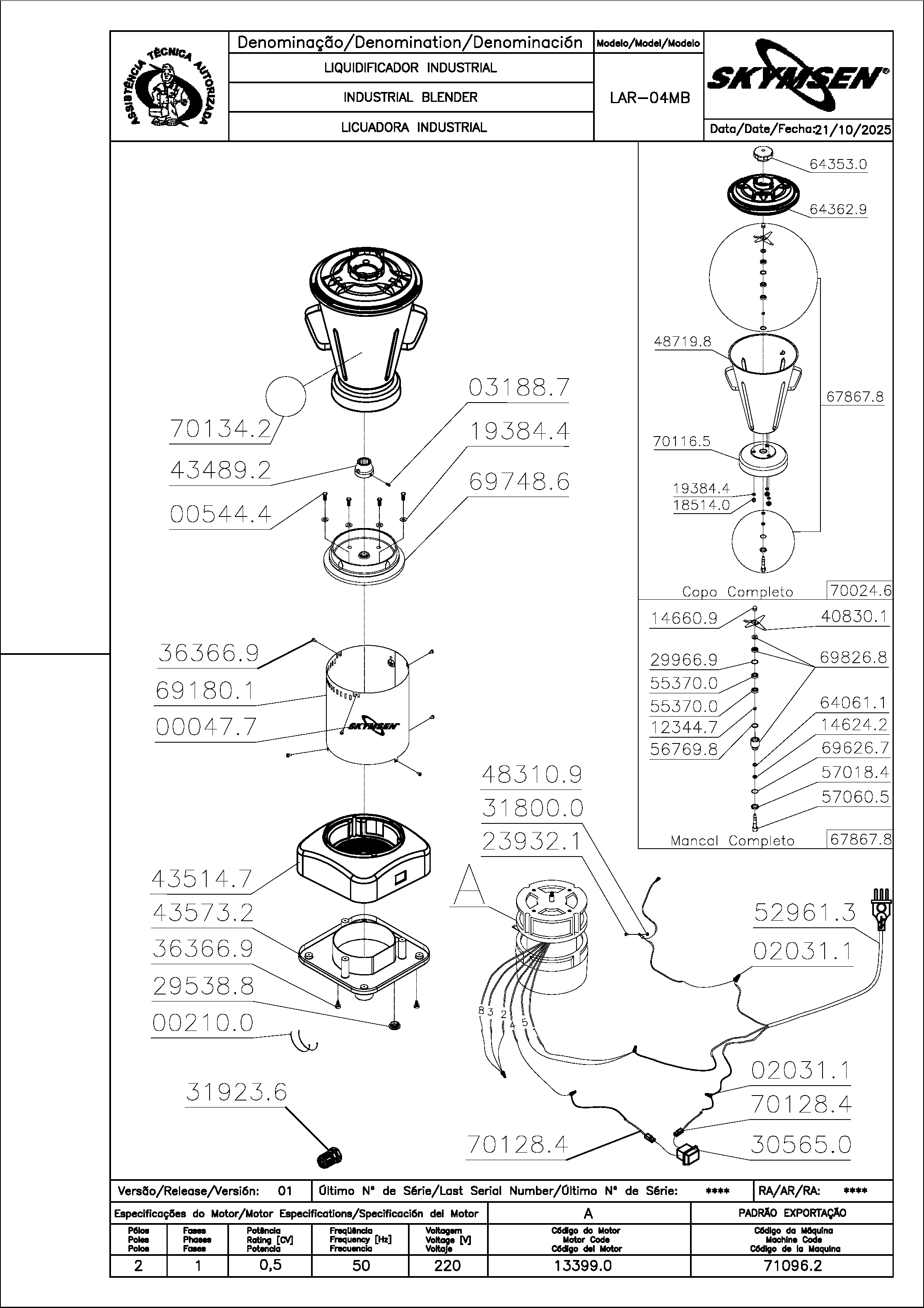 | 13399.0 | MOTOR 0,5CV 50HZ W (10021888)(133990) | PC |