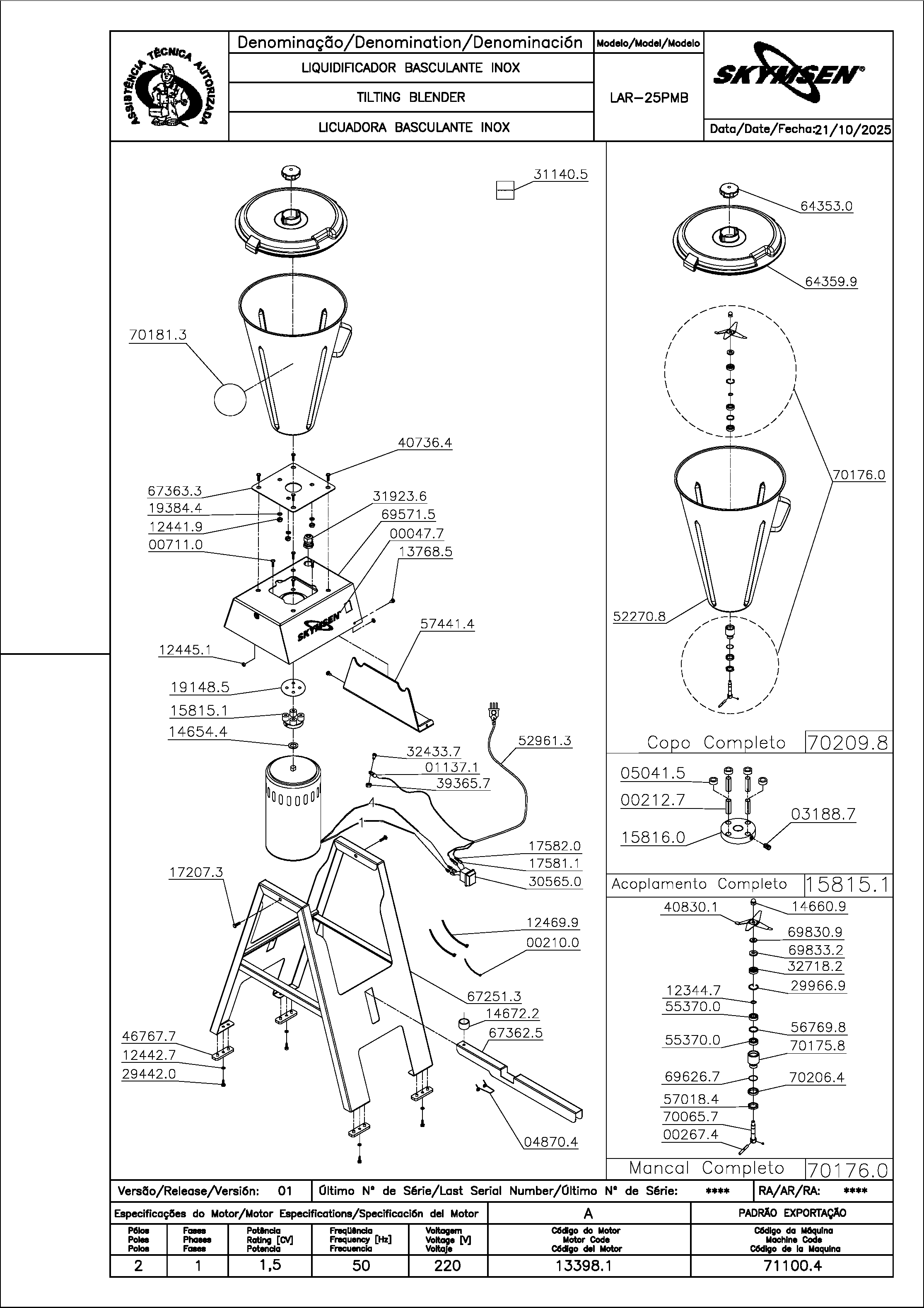 | 70209.8 | COPO COMPLETO LAR-25MB(702098) | PC | US$ 166.53 |