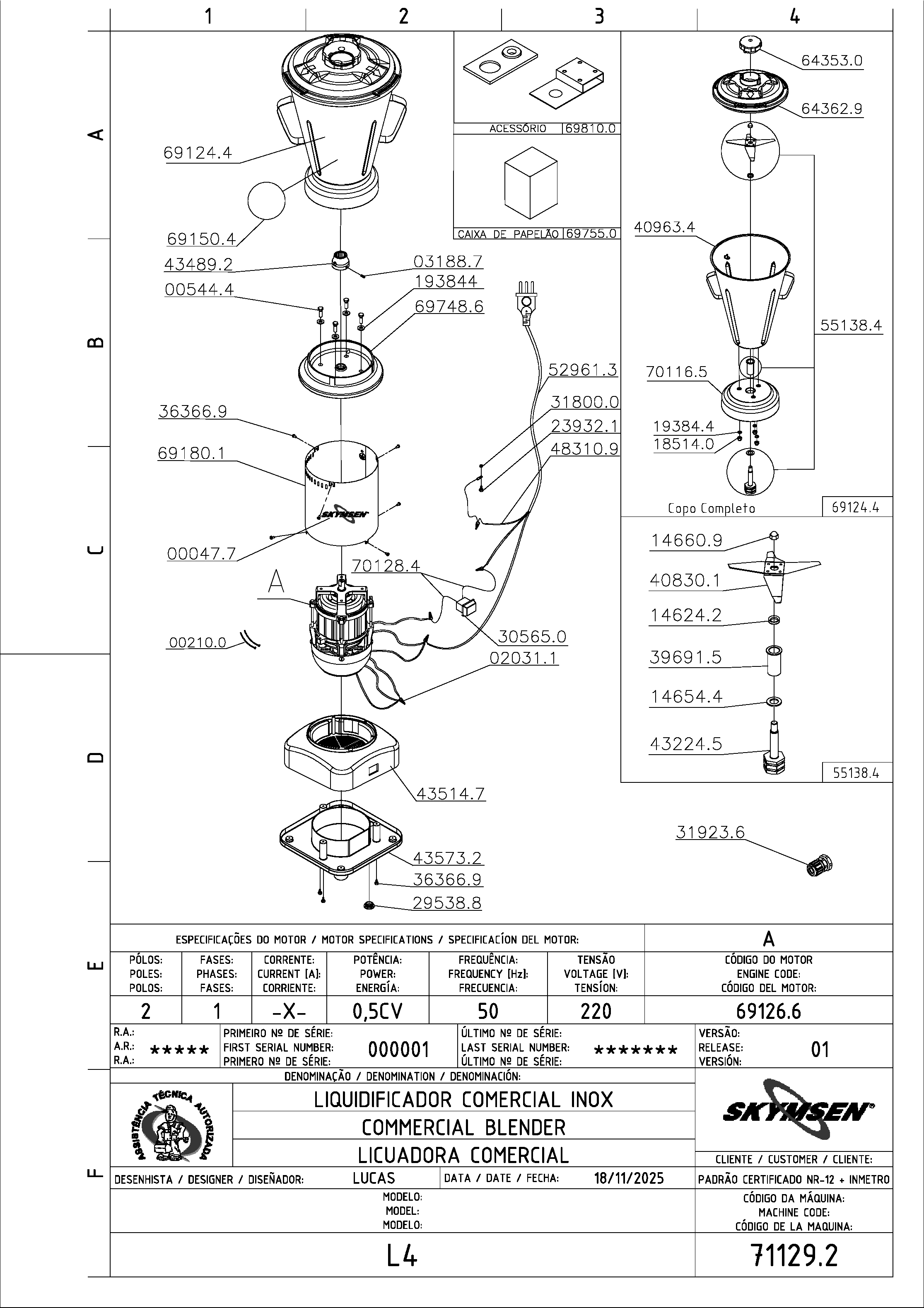 | 69126.6 | MOTOR 0,5CV 50HZ 220V | PC |