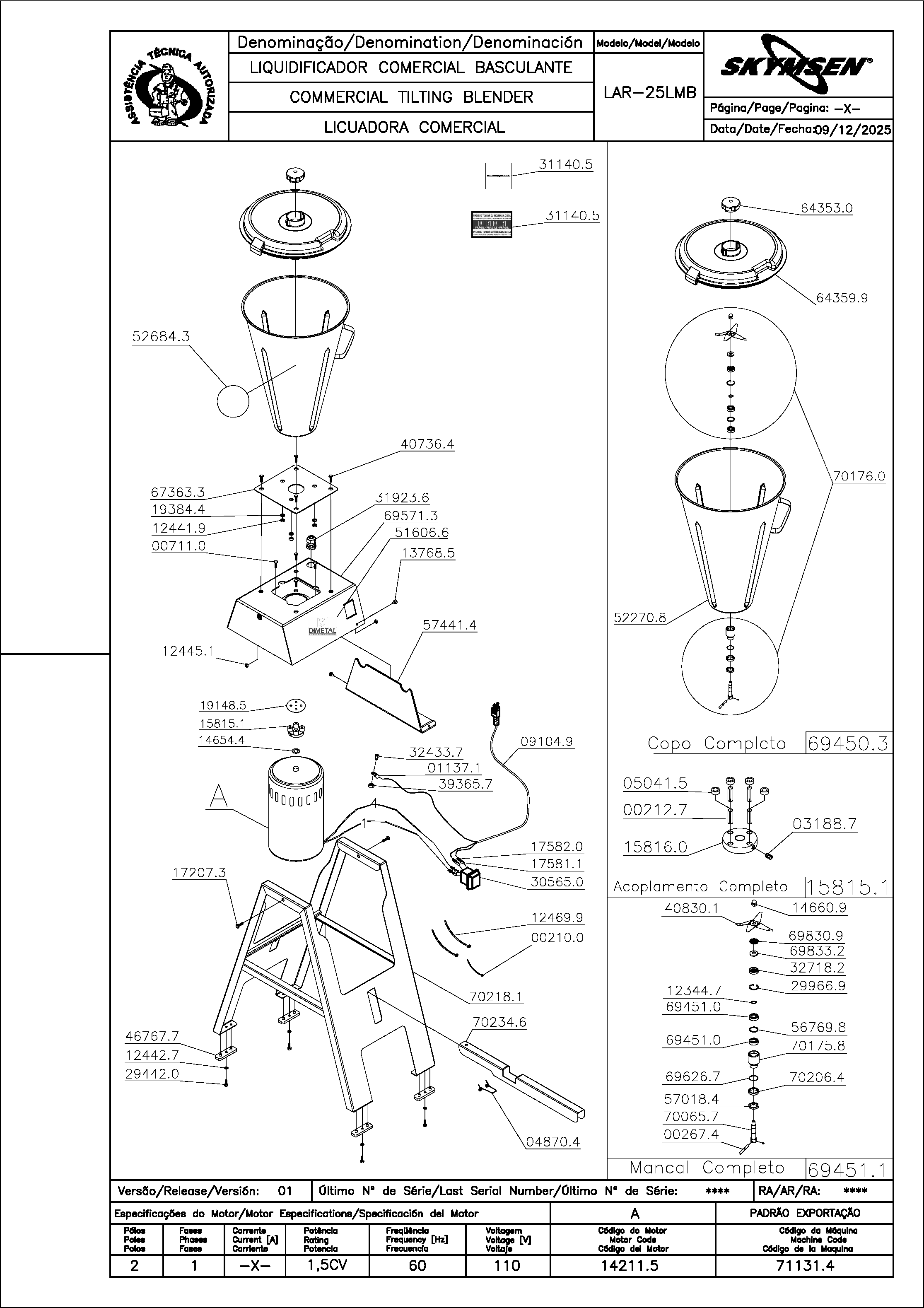 | 69450.3 | COPO COMPLETO LAR-25MB AMC | PC |