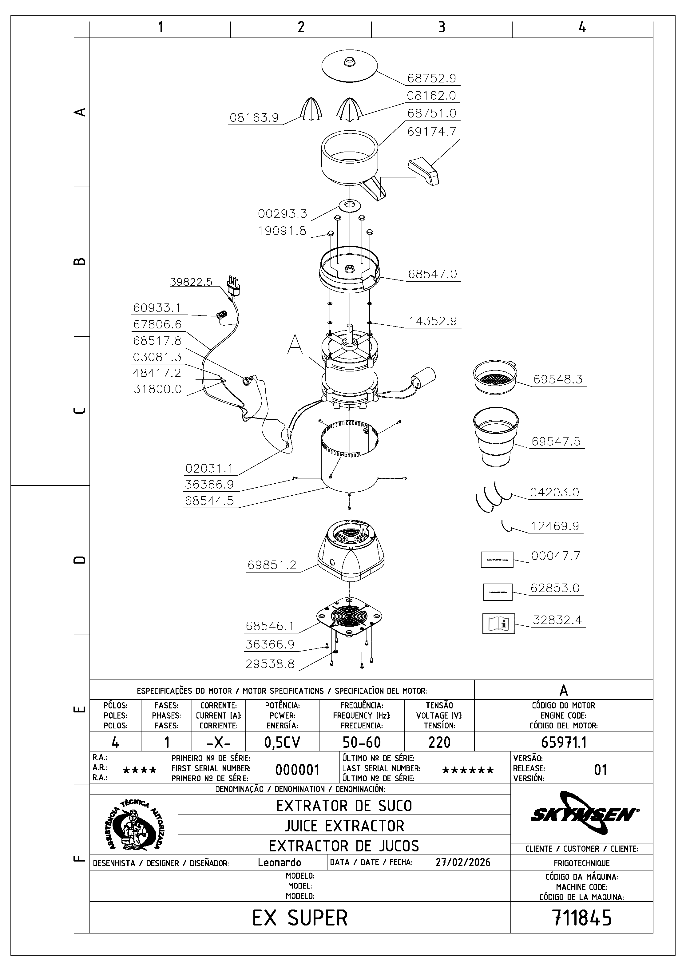 | 65971.1 | MOTOR 0,5CV 110-127/220-254/220V 50/6 | PC |