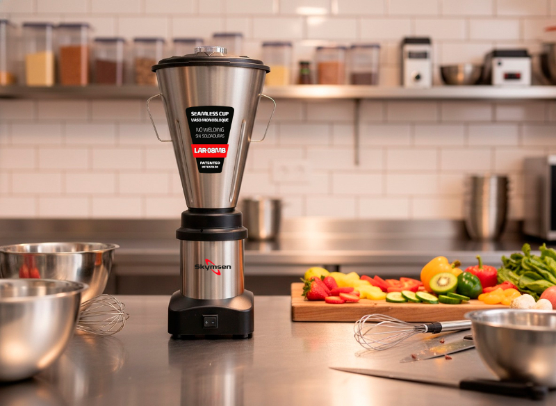 For kitchens with intensive blending needs, the LAR-08MB Commercial Blender delivers. With its substantial 8-liter seamless stainless steel cup, this model is designed for high-volume preparation of diverse recipes, effortlessly handling both cold and hot ingredients such as large quantities of soups, creams, and sauces, while ensuring superior hygiene and ease of cleaning.