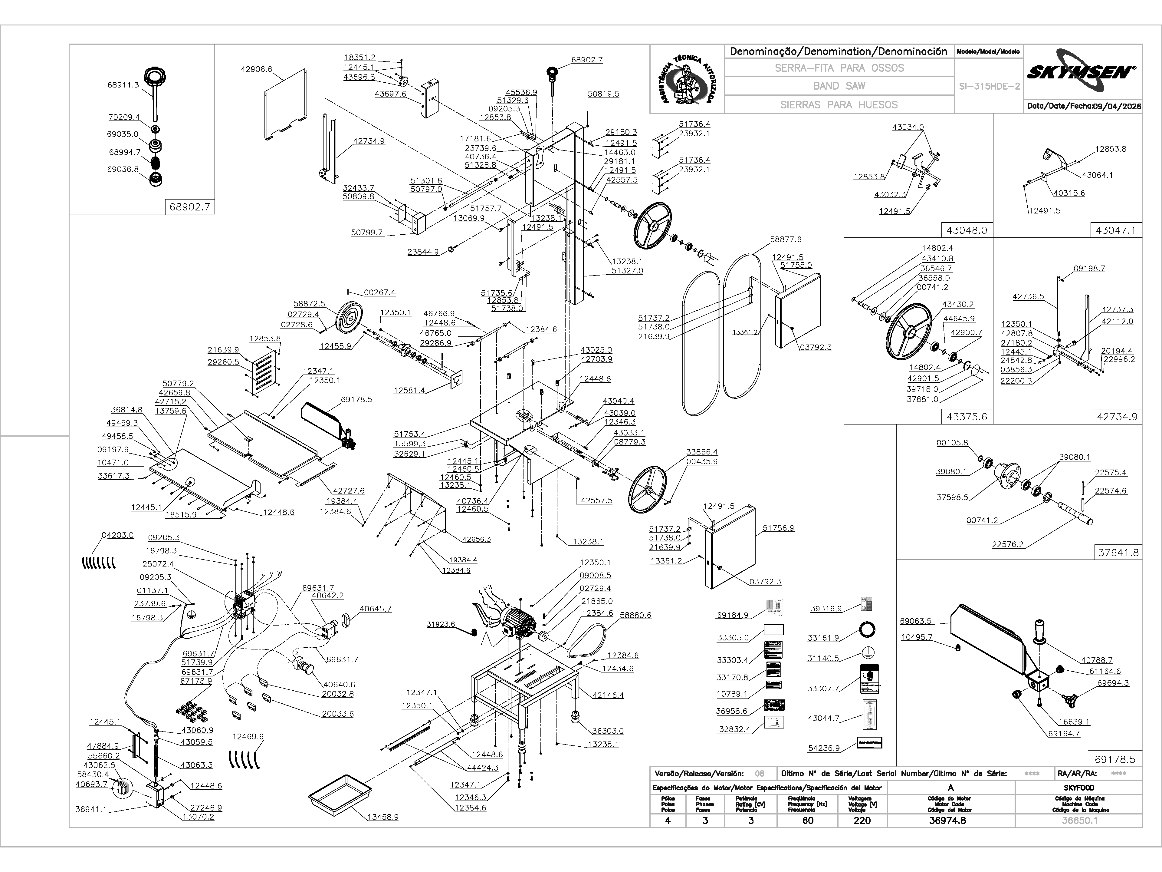 SIERRA PARA HUESOS, MESA MÓVIL, REGULADOR DE CORTE, CINTA 3.150 mm / 124", HEAVY DUTY