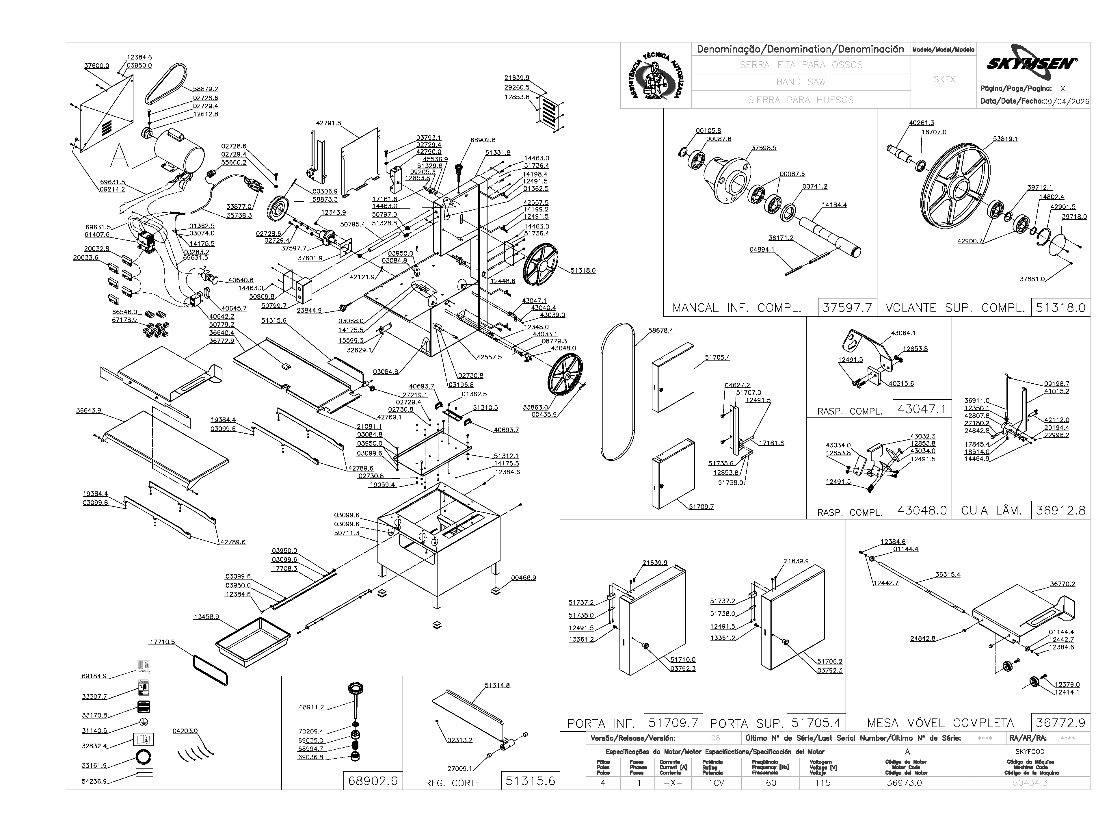 SIERRA PARA HUESOS, CON MESA MÓVEL, REGULADOR DE CORTE, CINTA 2.510 mm / 99" - ETL
