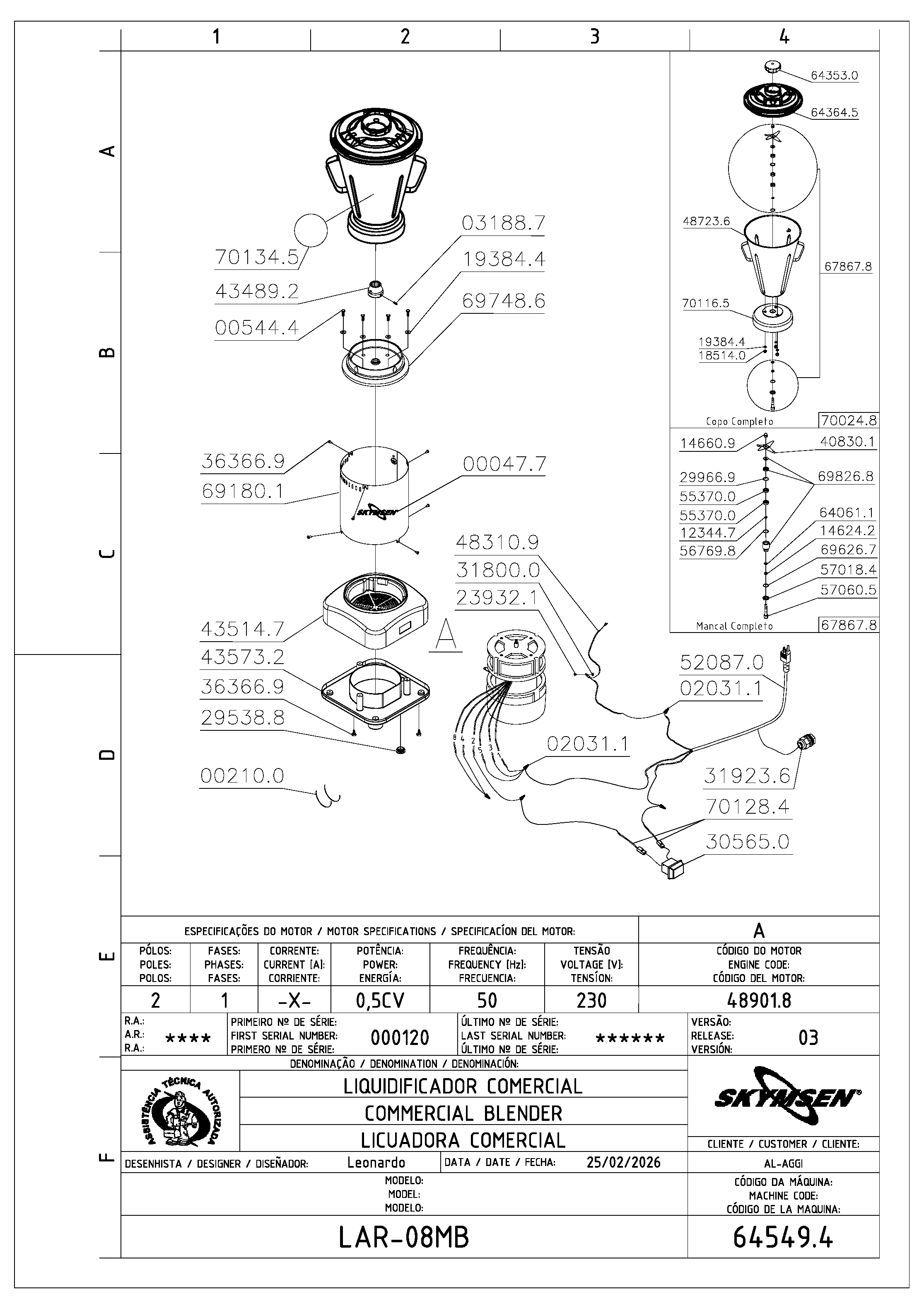 | 48901.8 | MOTOR 0,5CV 50Hz 220V W (11997035) | PC |