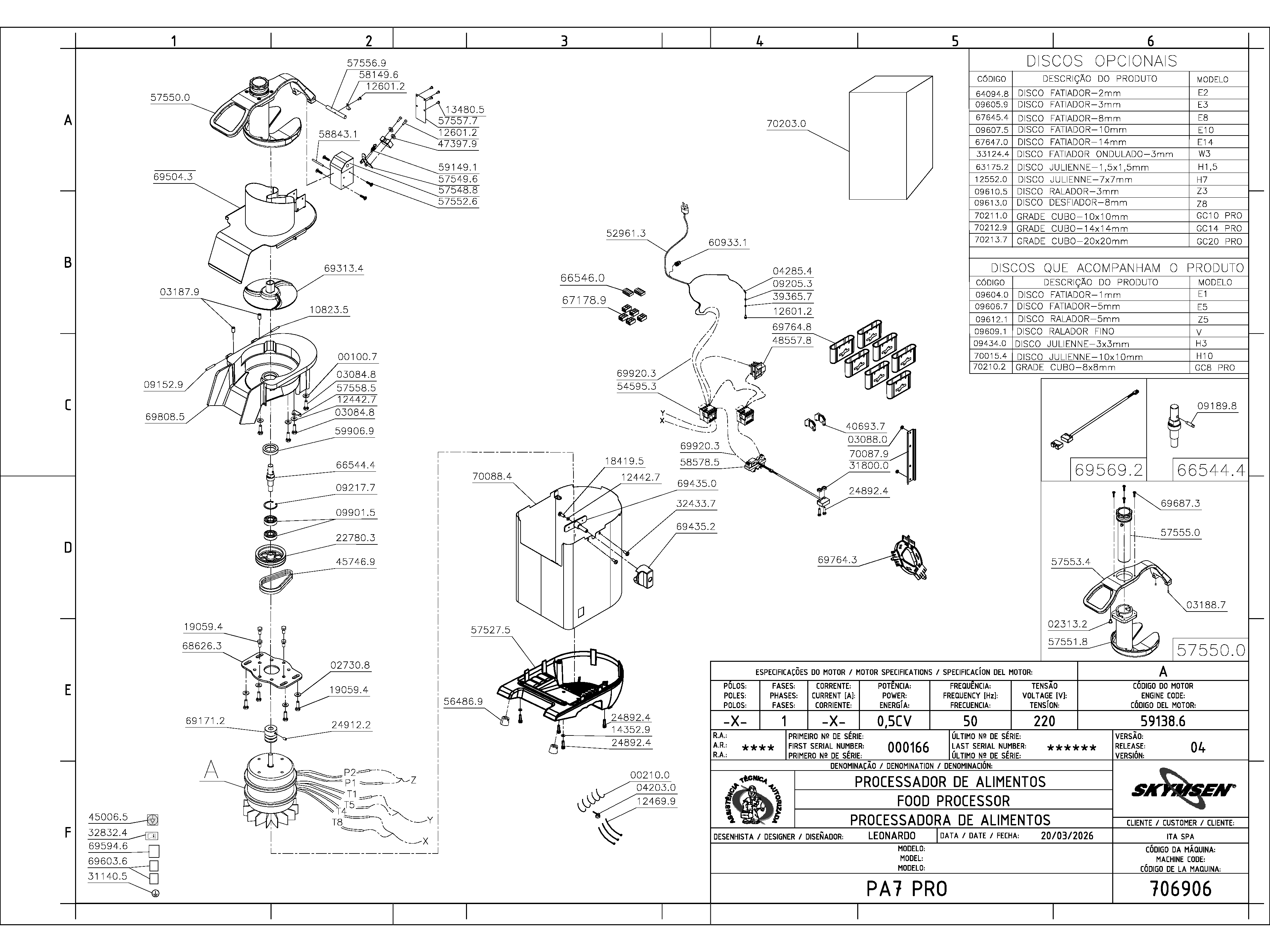 PROCESADORA DE ALIMENTOS, INOXIDABLE, CON SISTEMA DE SEGURIDAD, CON 7 DISCOS DIÂMETRO 203 mm (E1, E5, Z5, V, H3, H10, GC
