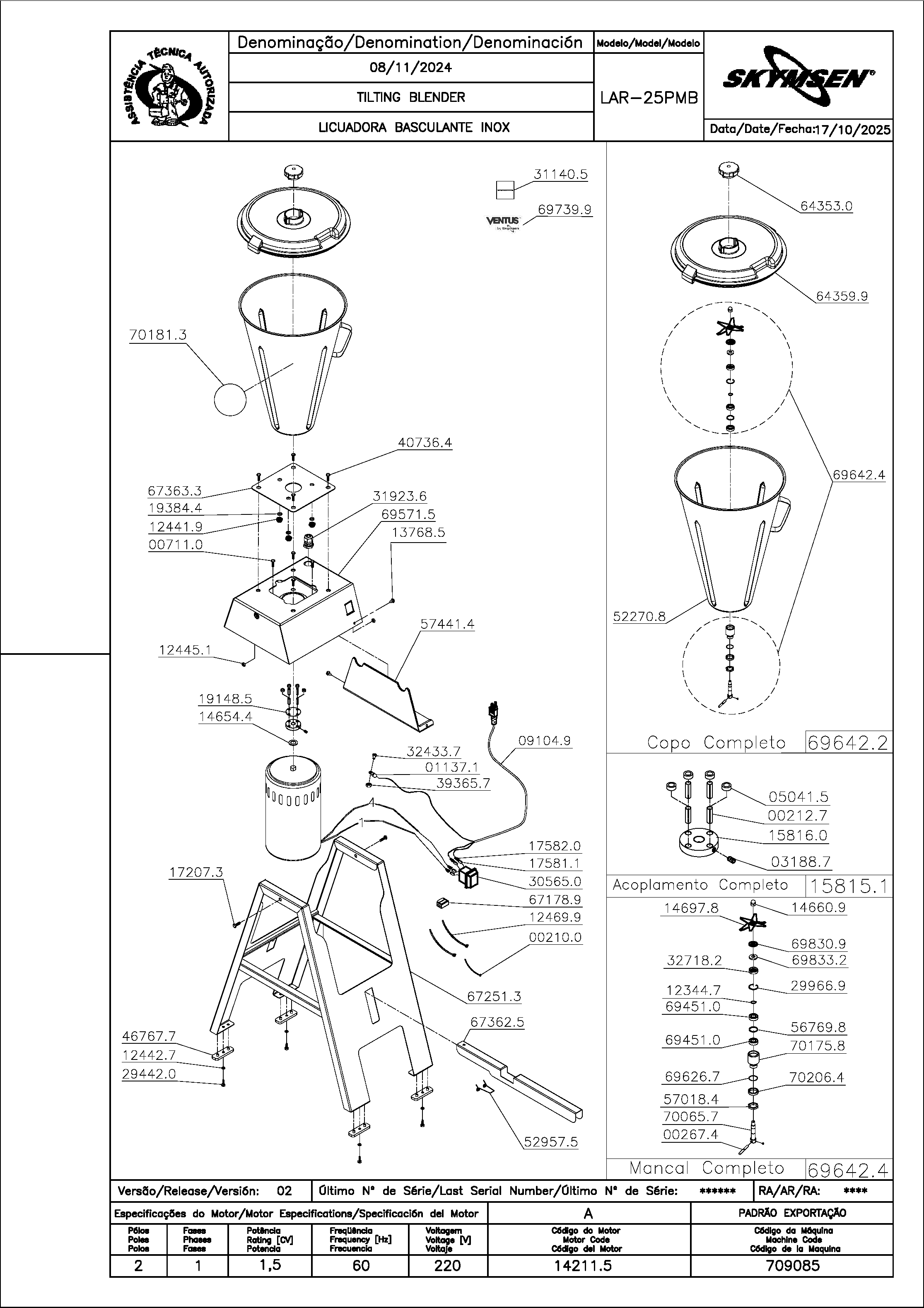 | 69642.2 | COPO COMPLETO LAR-25MB(696422) | PC | US$ 143.67 |