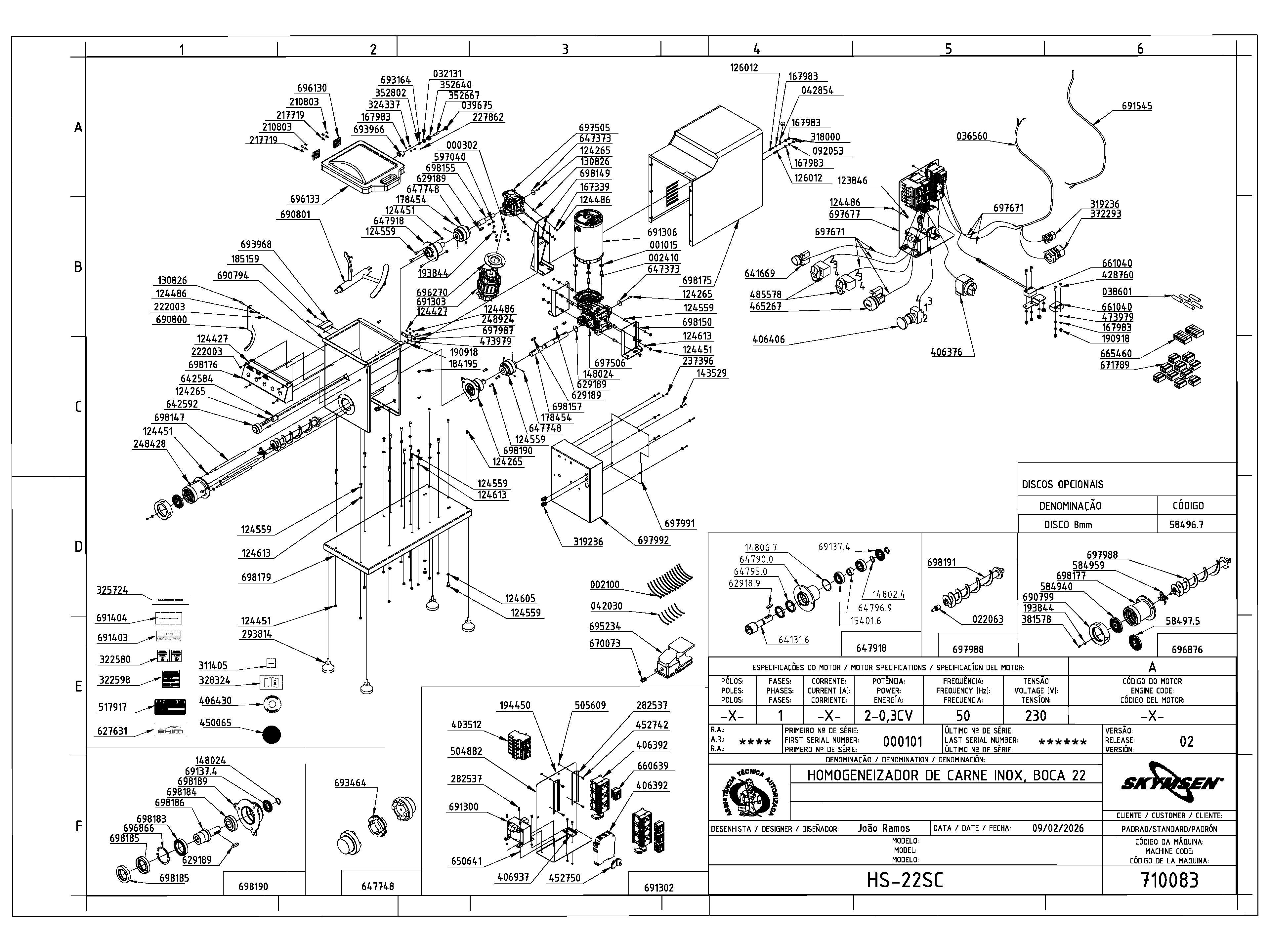 MOLINO MEZCLADOR DE CARNE 22, INOXIDABLE, CON BOCA INOXIDABLE, SIN CABALLETE