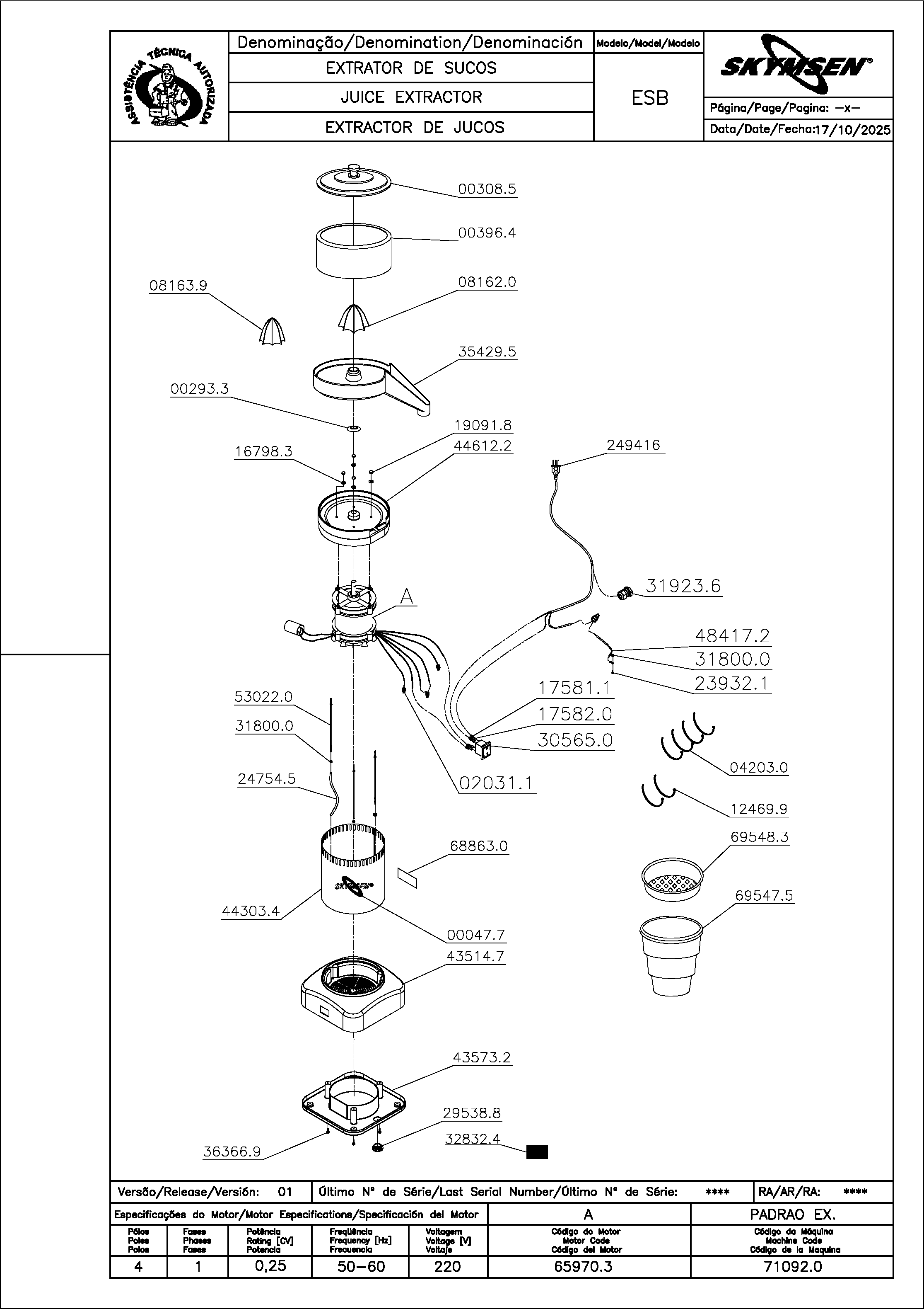 | 65970.3 | MOTOR 0,25CV 110-127/220-254V 50/60HZ | PC |