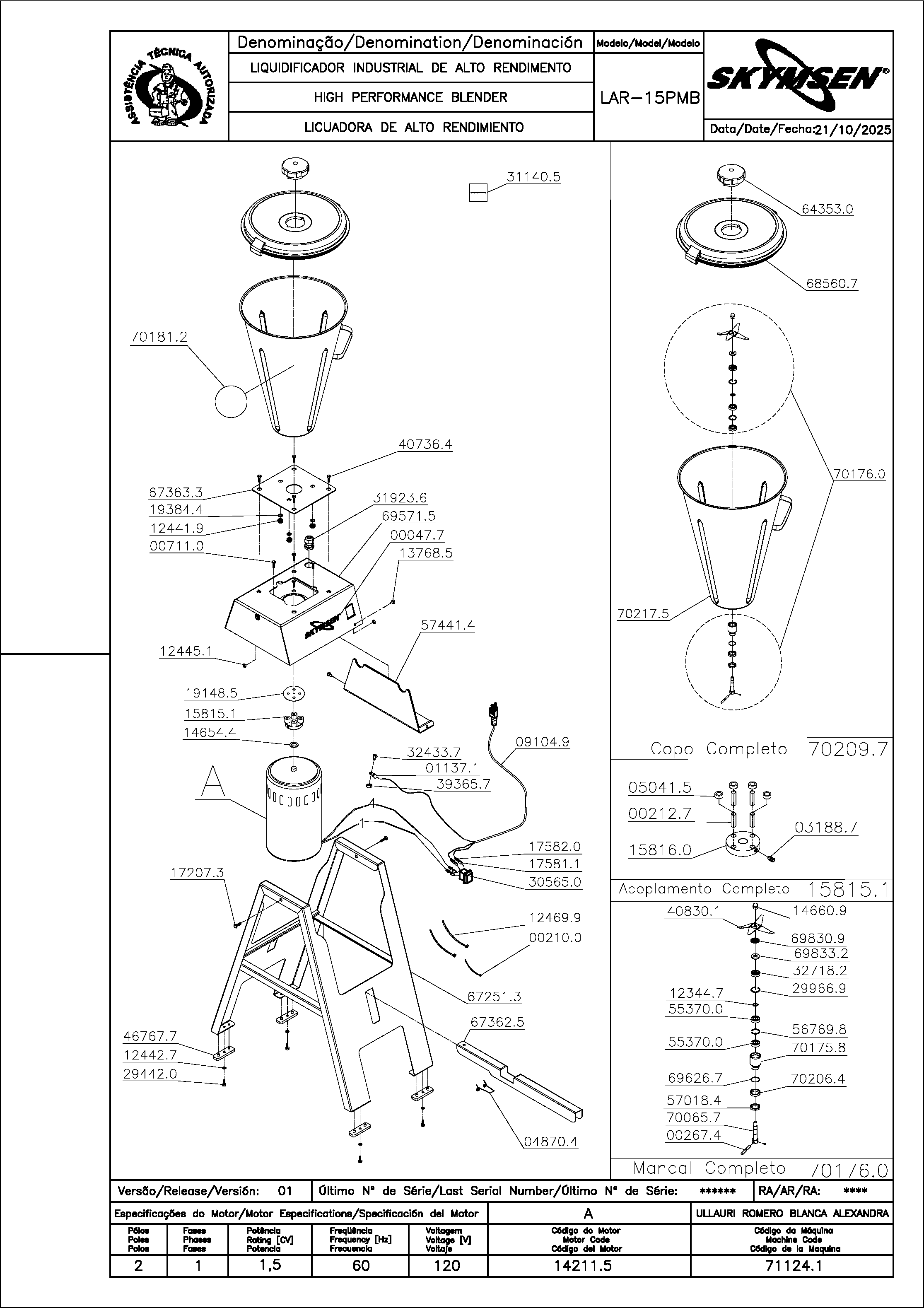 | 70209.7 | COPO COMPLETO LAR-15MB(702097) | PC |