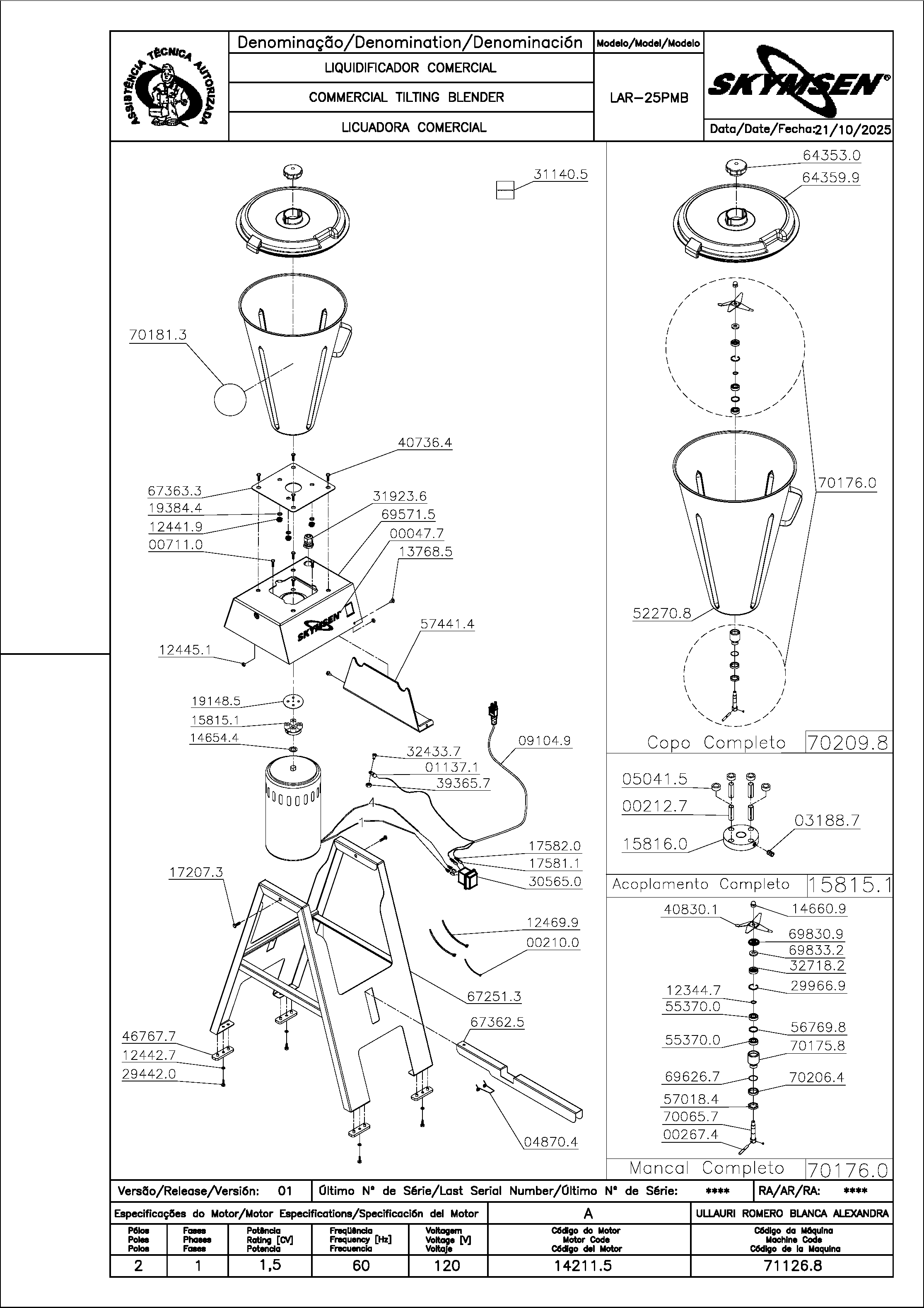 | 70209.8 | COPO COMPLETO LAR-25MB(702098) | PC | US$ 166.53 |