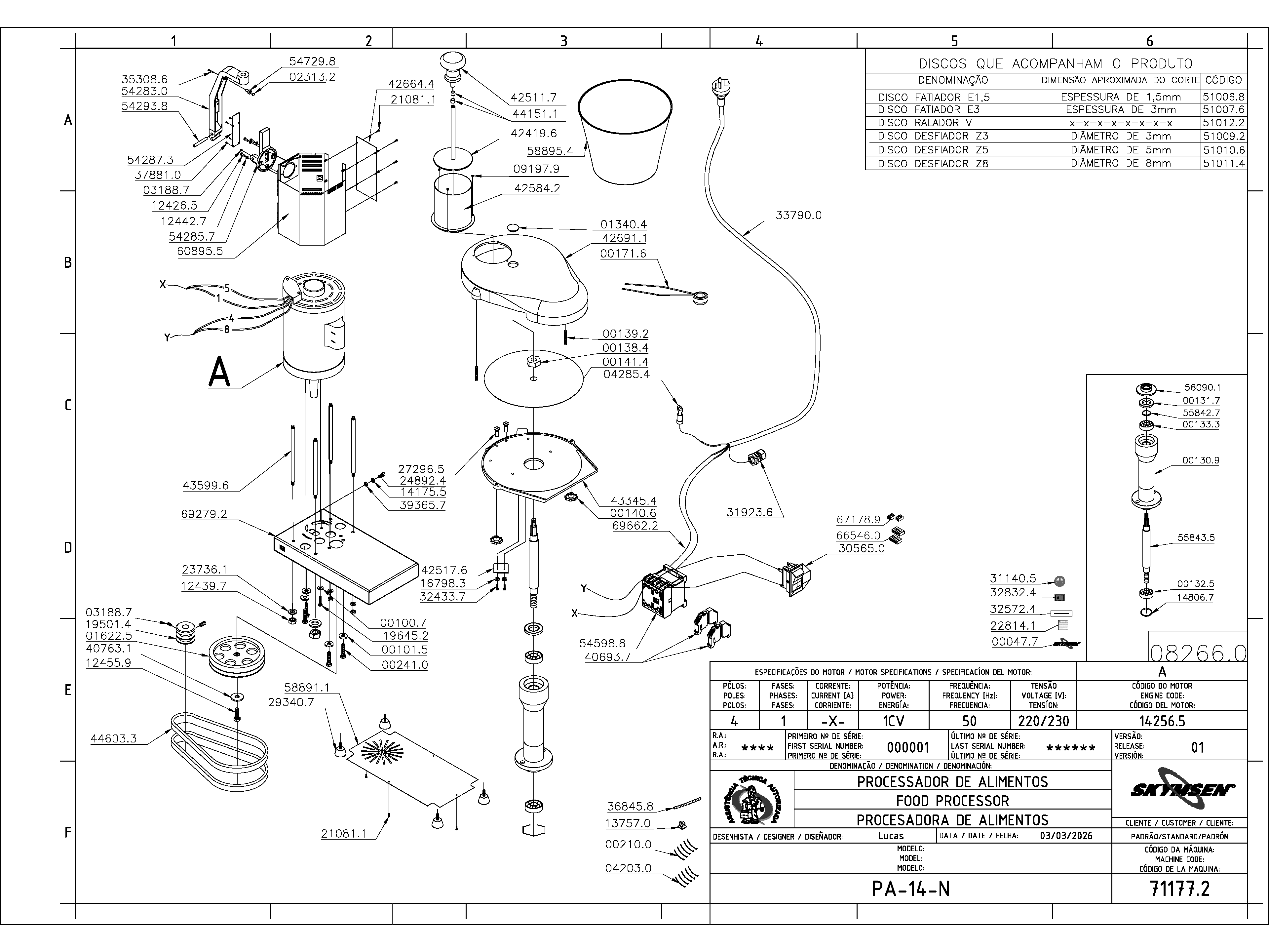 PA-14-N - PROCESADORA DE ALIMENTOS 220 V