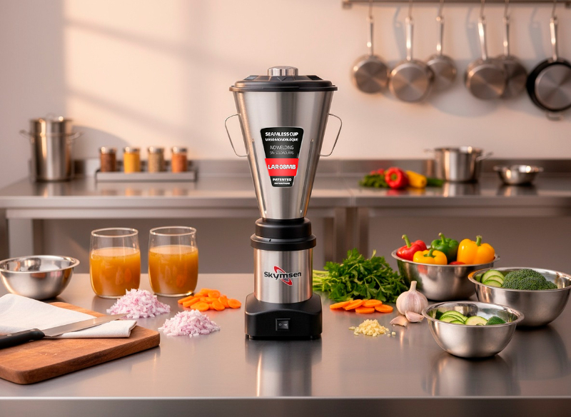 For kitchens with intensive blending needs, the LAR-08MB Commercial Blender delivers. With its substantial 8-liter seamless stainless steel cup, this model is designed for high-volume preparation of diverse recipes, effortlessly handling both cold and hot ingredients such as large quantities of soups, creams, and sauces, while ensuring superior hygiene and ease of cleaning.