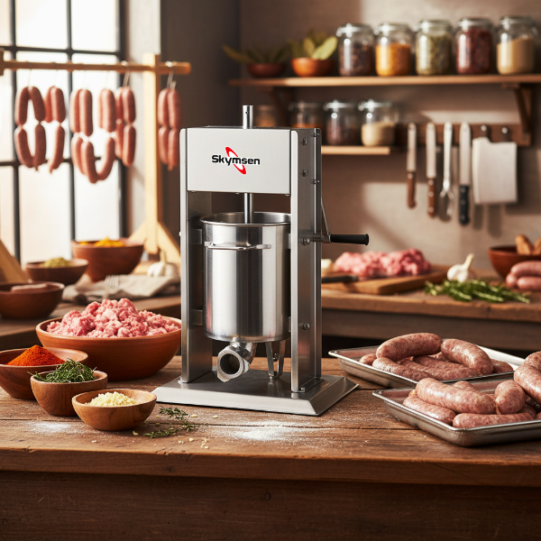 Optimice su producción de embutidos con la Embutidora de Chorizo Vertical EL10V, una máquina robusta y eficiente diseñada para uso profesional. Fabricada con una construcción totalmente en acero inoxidable, esta embutidora garantiza máxima higiene y una durabilidad excepcional, convirtiéndola en una adición duradera para su cocina o línea de producción.