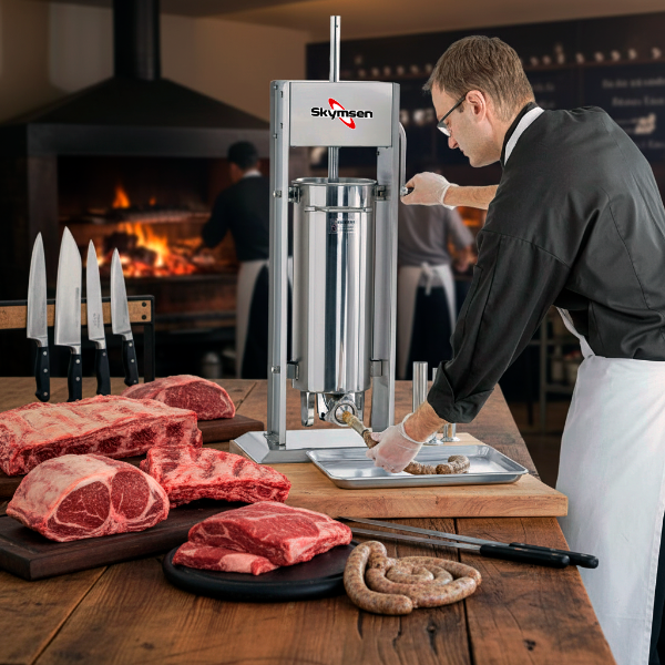 Aumente su capacidad de producción de embutidos con la Embutidora de Chorizo Vertical EL15V, una máquina potente y confiable diseñada para entornos profesionales exigentes. Con una construcción totalmente en acero inoxidable, esta embutidora garantiza una higiene superior y una durabilidad excepcional, asegurando que resista un uso riguroso a lo largo del tiempo.