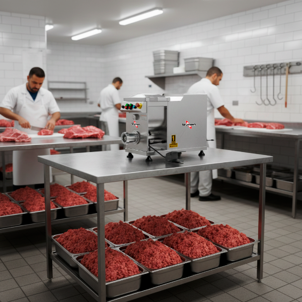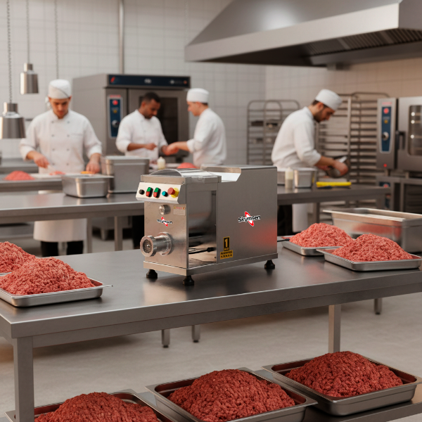 Logre carnes perfectas en segundos con el Homogeneizador HS-22SC, una máquina compacta pero potente diseñada para mezclar y moler grandes cantidades de carne. Este robusto homogeneizador aumenta significativamente la productividad, haciendo la carne más homogénea y reduciendo la grasa aparente, ideal para la venta en autoservicio.