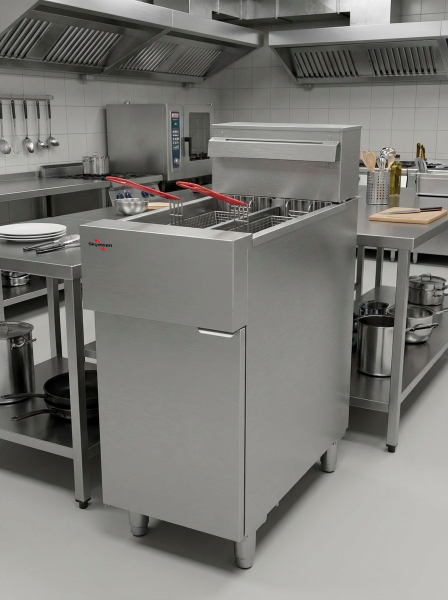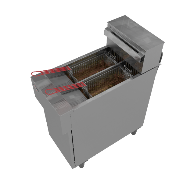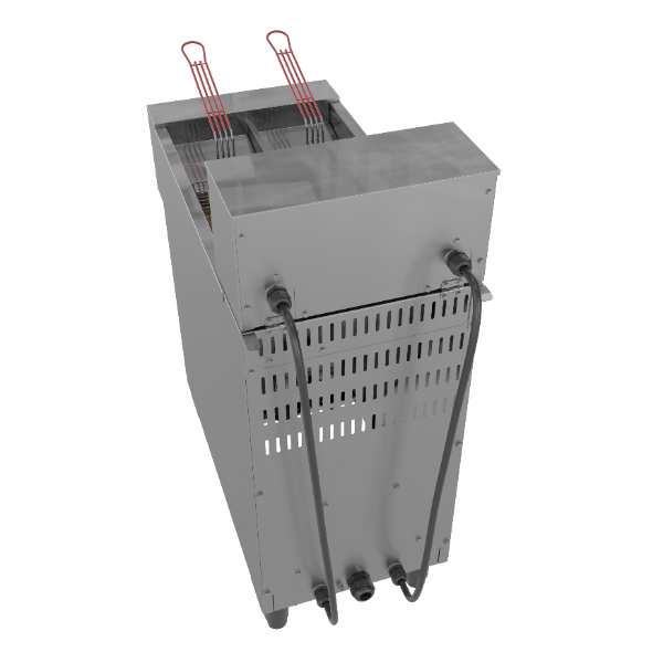 Incluye un controlador digital con visor de temperatura y aviso sonoro, canastos niquelados robustos con mango revestido, resistencia basculante para facilitar la limpieza, tubos de drenaje en acero inoxidable, registros de drenaje de 1.1/4", puerta con apertura frontal y marcaje de nivel de aceite. La solución ideal para restaurantes, hoteles y servicios de catering que requieren eficiencia y robustez.