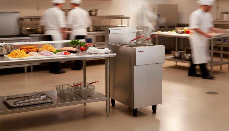 FREIDORA GAS ZONA FRÍA CUBA DIVIDIDA 2x12,5 LITROS, INOXIDABLE, MILIVOLTIO, GN