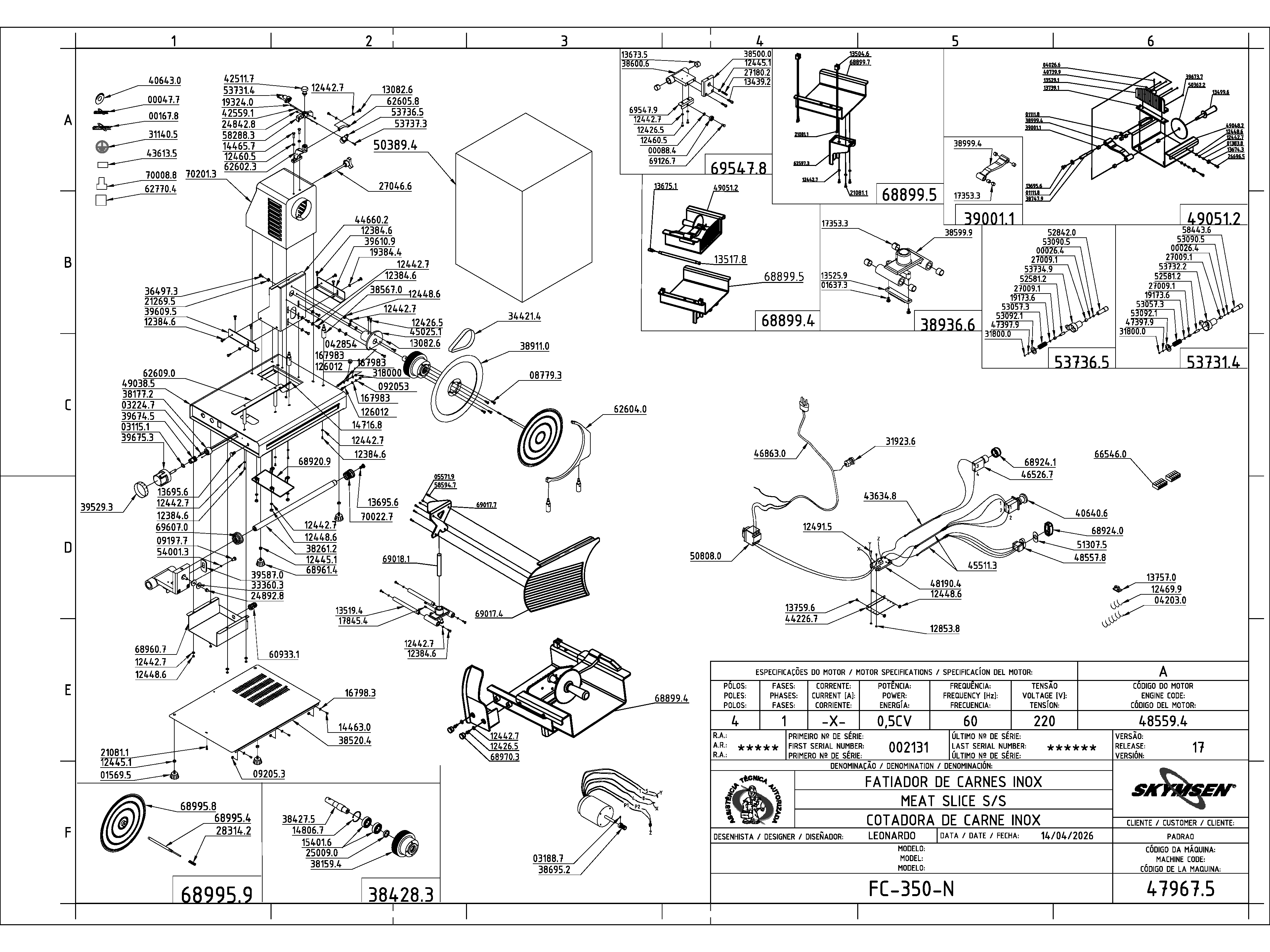 FATIADOR DE CARNES INOX, LÂMINA 350 mm