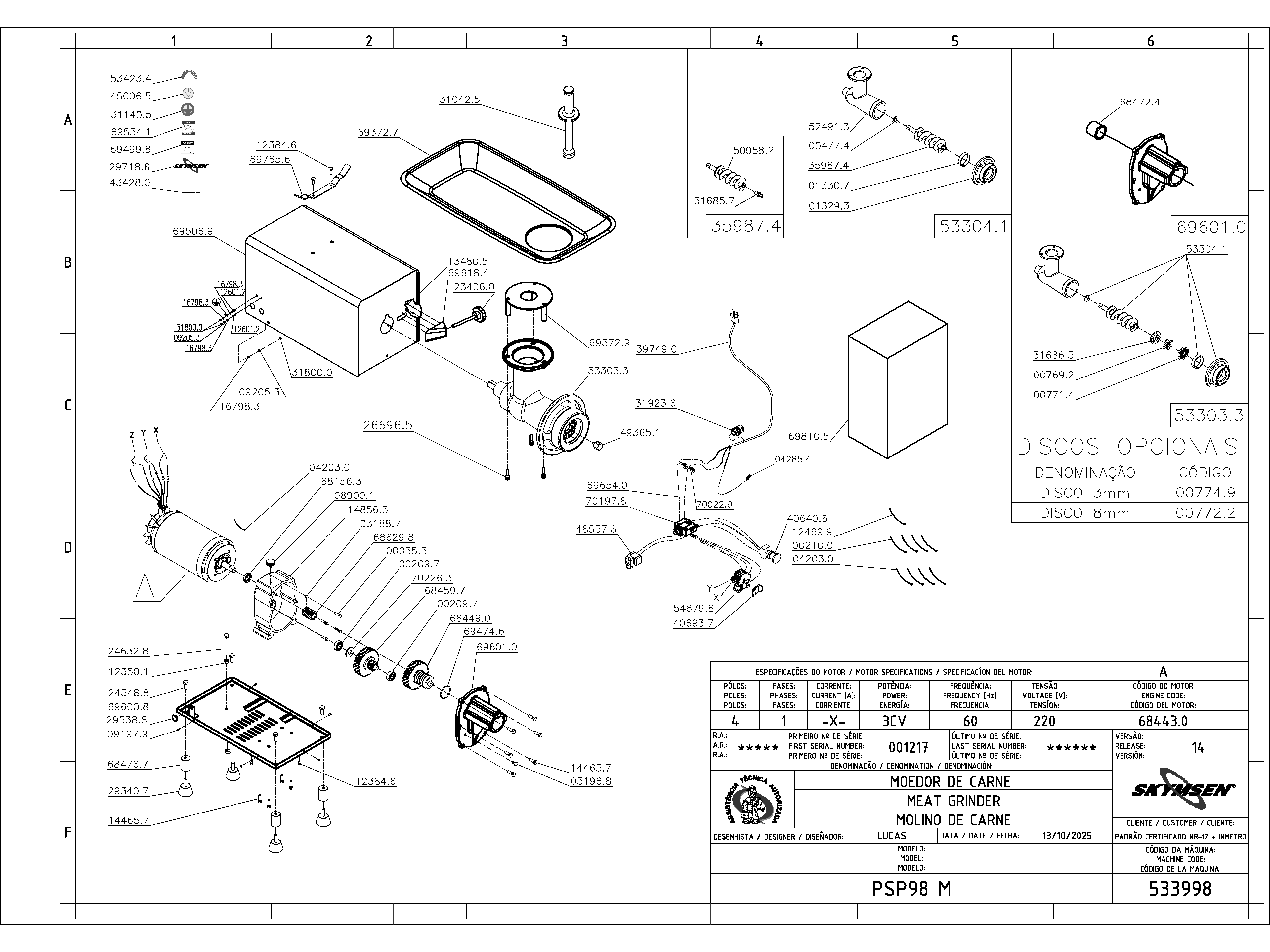 MOEDOR DE CARNE BOCA 98, COM PRÉ CORTADOR