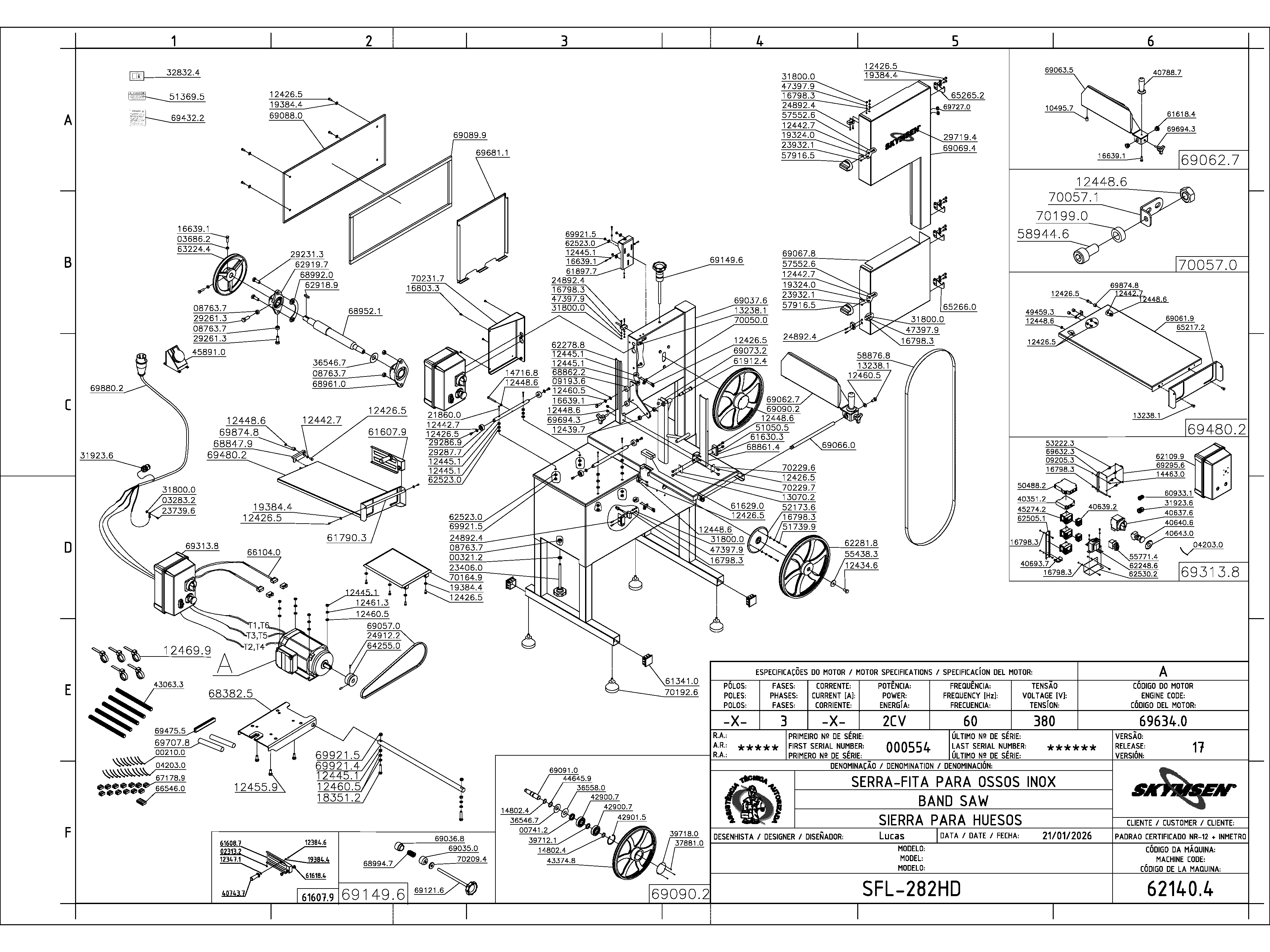 SERRA FITA PARA CARNE INOX, COM EMPURRADOR, MESA MÓVEL, REGULADOR DE CORTE, LÂMINA 2.820 mm, HEAVY DUTY