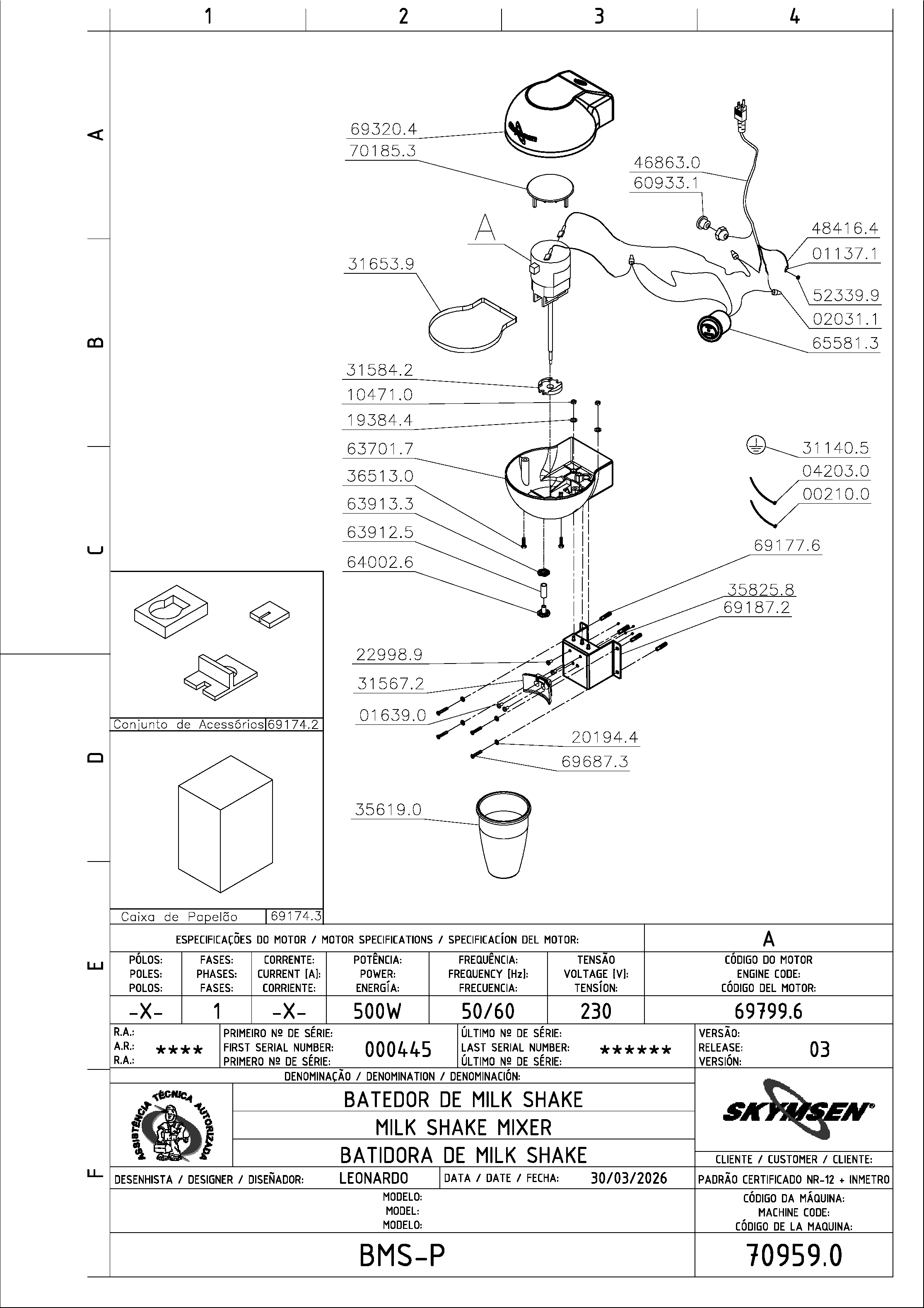 | 69799.6 | MOTOR 500W 230V CE BMS (ZHEJIANG YONG | PC |