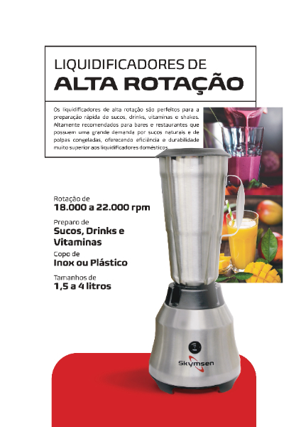 Para quem trabalha todos os dias no preparo dos mais variados tipos de bebidas e preparo de sopas e sobremesas, alto desempenho, a agilidade e a capacidade de se obter determinados tipos de texturas, fazem muita diferença na hora de atender e encantar seus clientes, seja em casas de sucos, bares e restaurantes, ou outros tipos de cozinhas comerciais. Para atender essa demanda, o liquidificador maxi blender da Skymsen é a escolha perfeita.