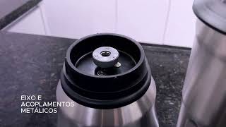 Perfeito para o preparo de sucos naturais com gelo ou polpa de fruta congelada, vitaminas e shakes, possui copo de inox de 2 litros sem soldas e eixo e acoplamento metálicos que entregam robustez e durabilidade.