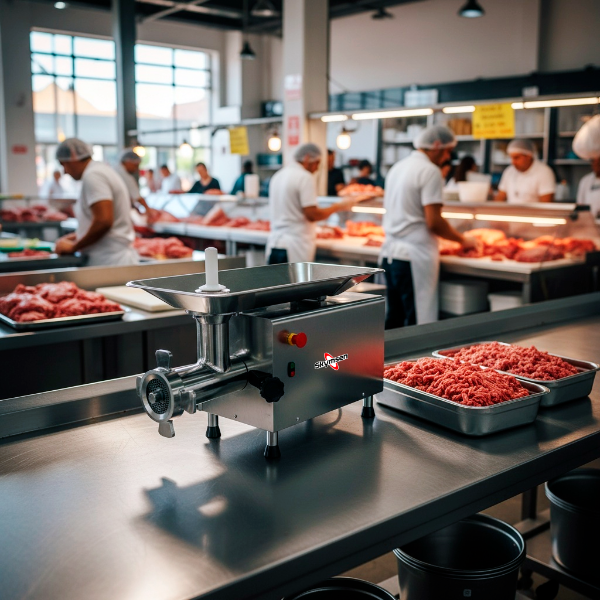 A operação do Moedor de Carne Inox PSP-98M ganha eficiência e segurança na bandeja ampla, totalmente de inox, com uma proteção fixa e um bocal mais largo, que facilita a operação e o ritmo de produção. Depois que a carne entra, o processo ainda ganha a qualidade de um sistema de corte duplo, com pré-cortador incluso.