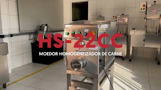 O Homogeneizador HS-22 é aprovado pelos órgãos competentes, garantindo um uso seguro em açougues e supermercados de todo o Brasil. Seu motor redutor de 2 CV assegura um desempenho superior e operação suave, ideal para demandas intensivas de moagem.