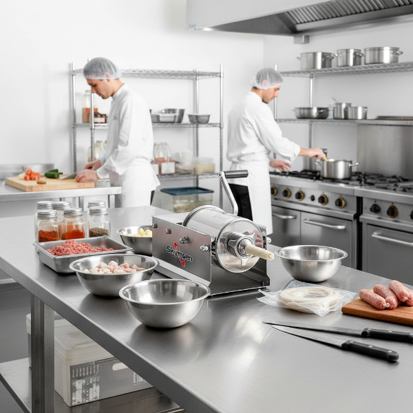 As ensacadeiras de linguiça horizontais da Skymsen são projetadas para agilizar o processo de produção de linguiças artesanais. Construídas com a tecnologia que permite inserir a massa de carne em um cilindro e empurrá-la de forma controlada e precisa, essas ensacadeiras ajudam a produzir linguiças de forma uniforme, com enchimento homogêneo, proporcionando uma experiência gastronômica única e agregando valor ao seu negócio.