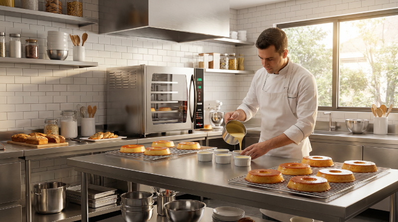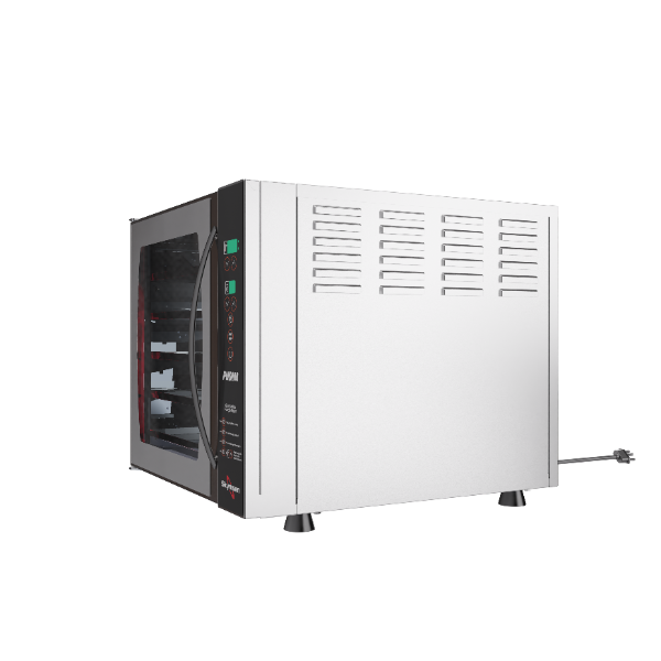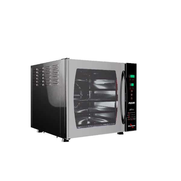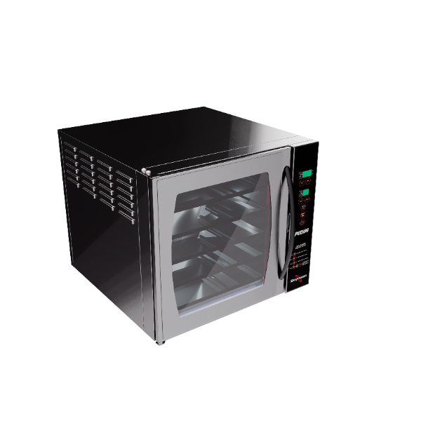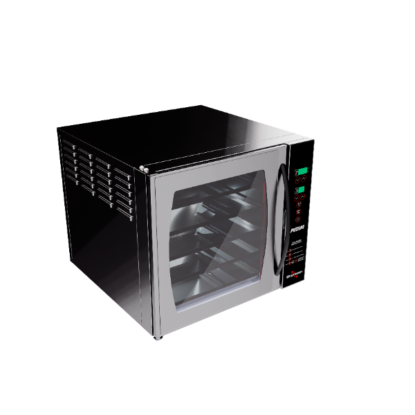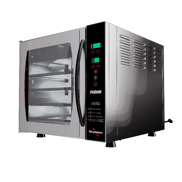 O forno turbo eléctrico para pudim foi desenvolvido exclusivamente para quem procura padronização, eficiência e qualidade profissional na produção de pudins. Compacto por fora e altamente eficiente por dentro, combina sistema de convecção e vapor, garantindo cozedura uniforme, brilho perfeito e textura cremosa em cada fornada.